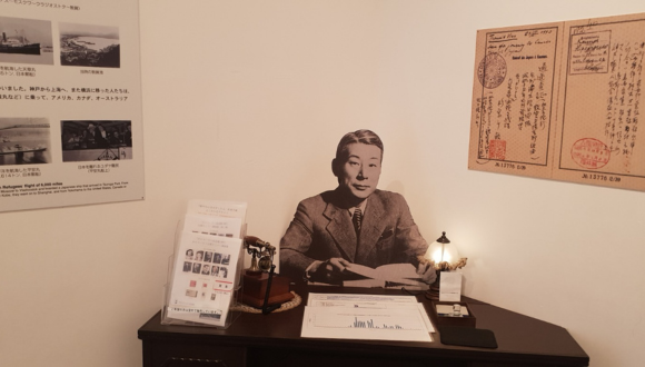 מייצג של צ'יאונה סוגיהרה במרכז לחינוך לשואה בפוקויאמה, יפן, אוגוסט 2025